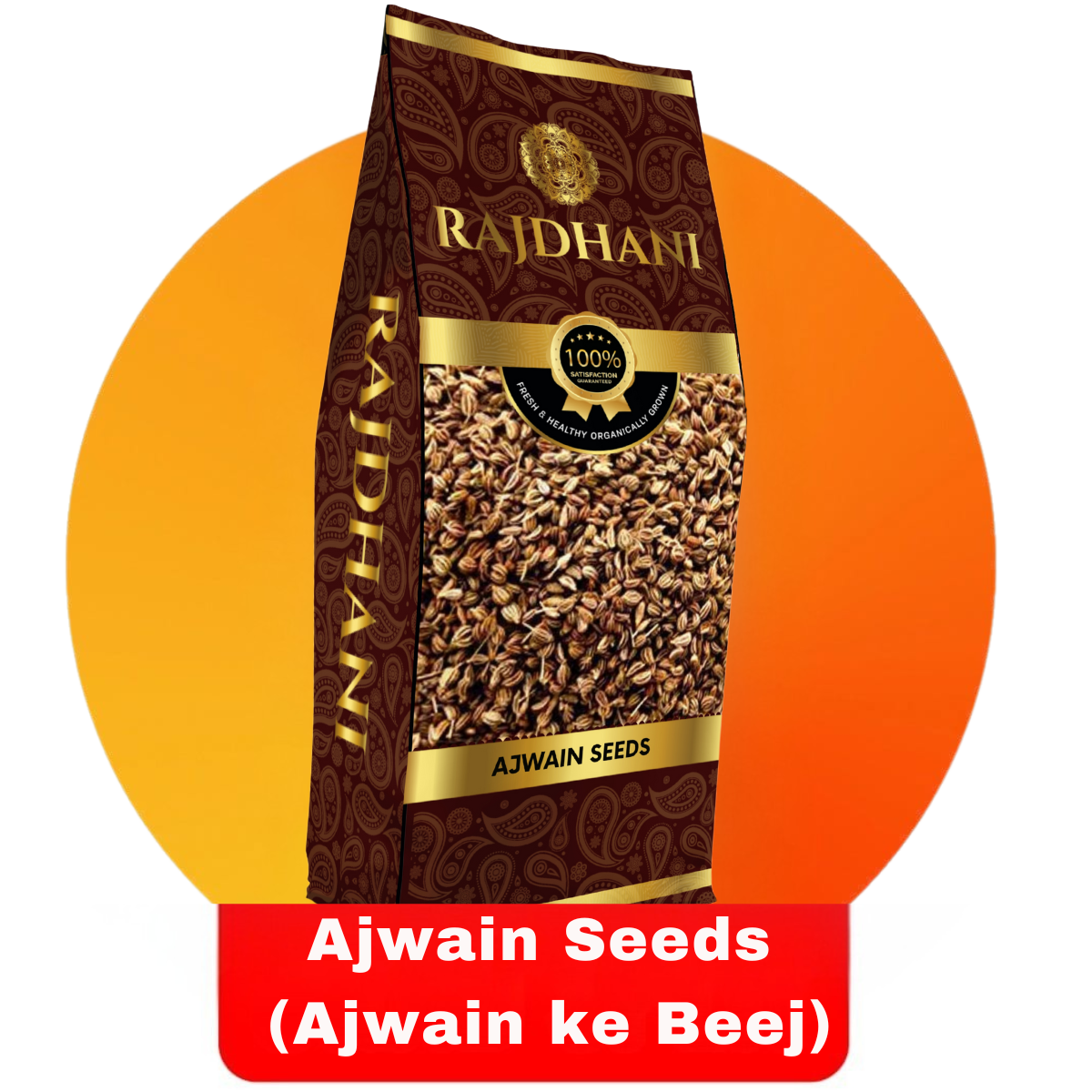 Enhance your cooking with Rajdhani Carom Seeds (Ajwain), known for their strong aroma and digestive benefits.