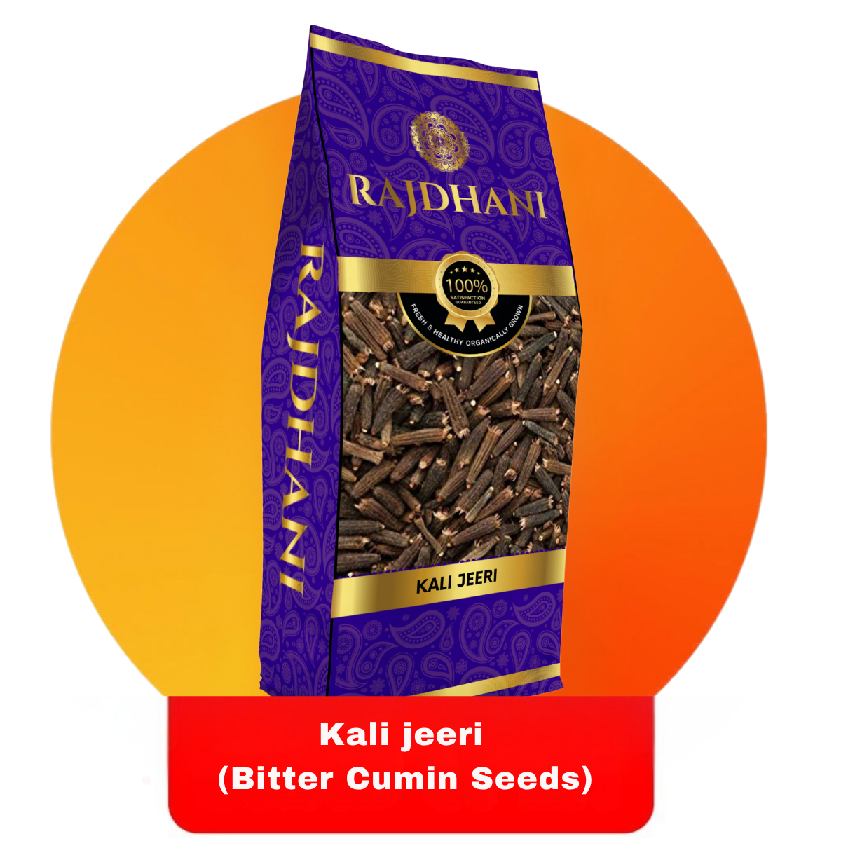 Rajdhani Kali Jeeri (Bitter Cumin Seeds) is known for its strong aroma and therapeutic properties. Commonly used in Ayurvedic remedies and spice blends, it supports digestion and metabolism. Rajdhani ensures premium quality, purity, and freshness to deliver authentic flavor and natural benefits.